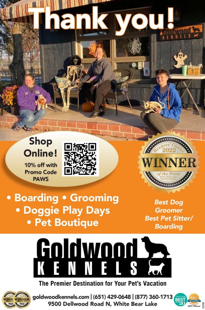 Thank you for voting us the Best Dog Groomer and Best Pet Sitter/Boarding in the 2022 Best of the White Bear Press!